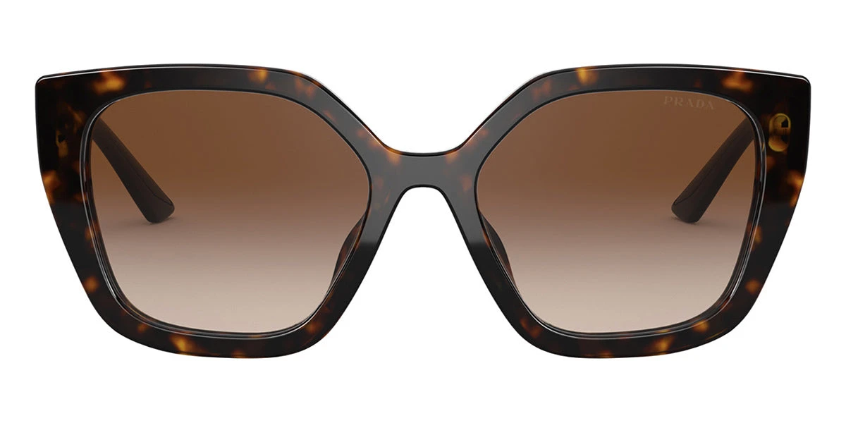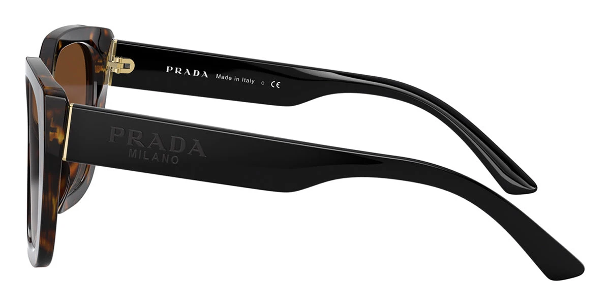 This rectangular Prada sunglass comes in a havana frame with brown gradient lenses.