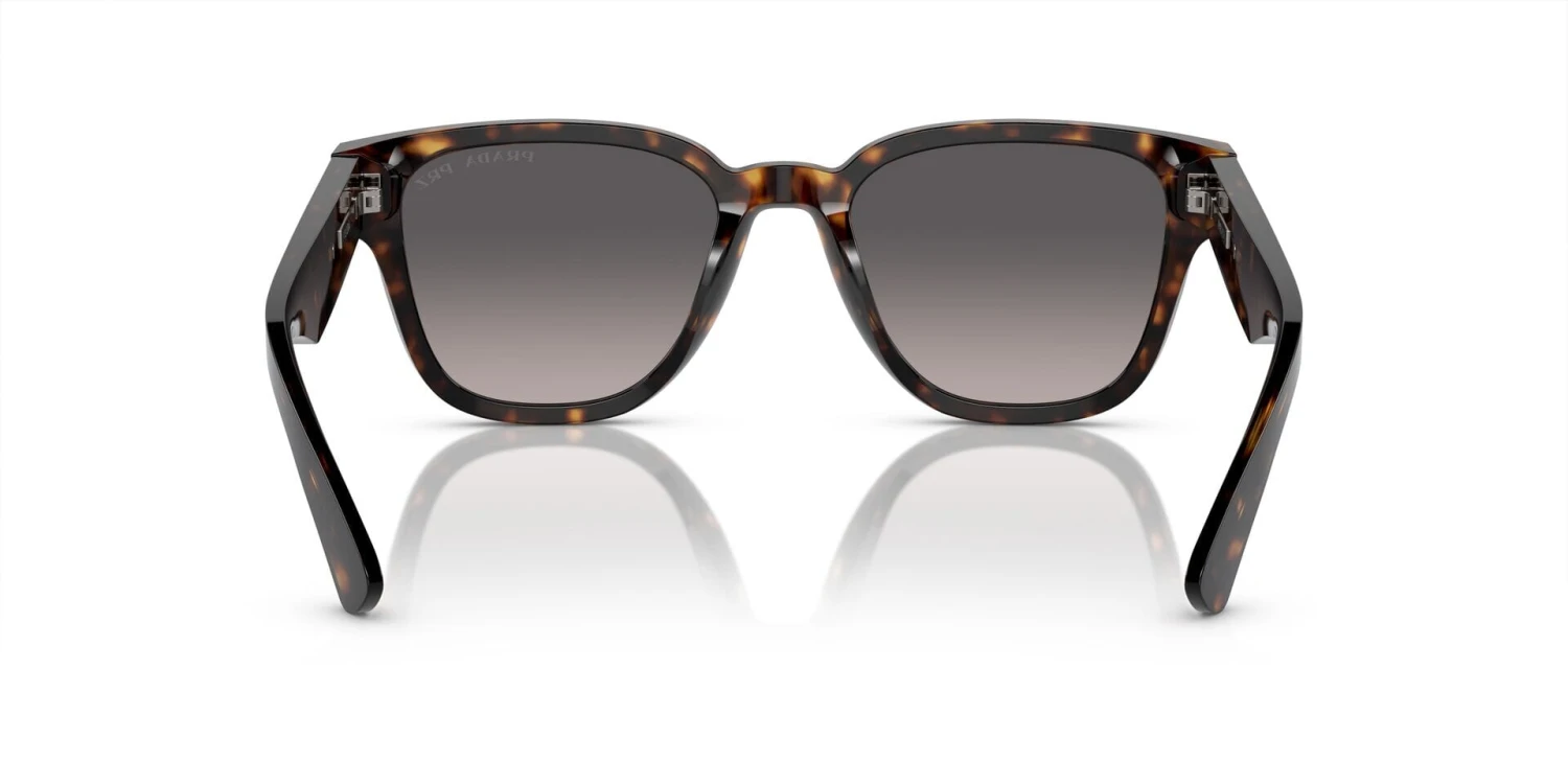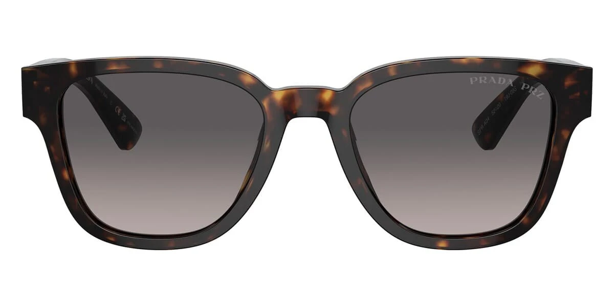 This square Prada sunglass comes in a tortoise frame with grey gradient polarised lenses.