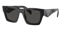 This square Prada sunglass comes in a black frame with dark grey lenses.