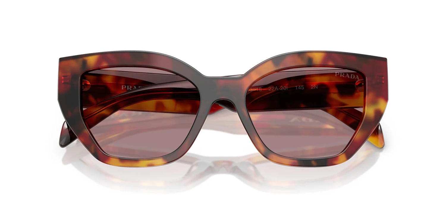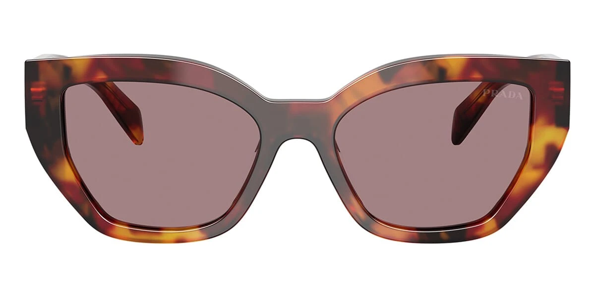 This butterfly Prada sunglass comes in a poppy tortoise frame with light purple brown lenses.