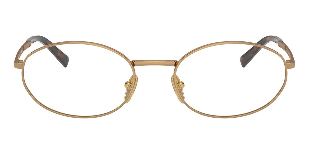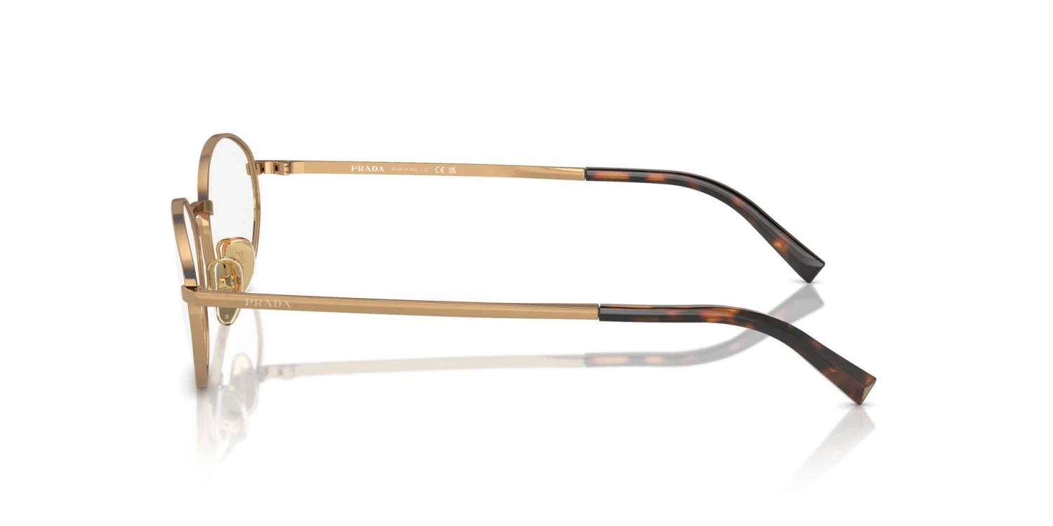 This round Prada optical comes in a brass frame.