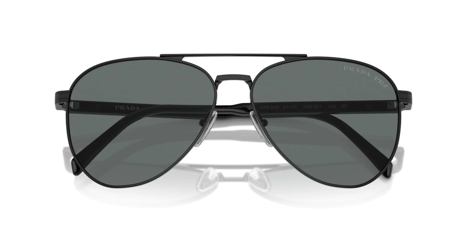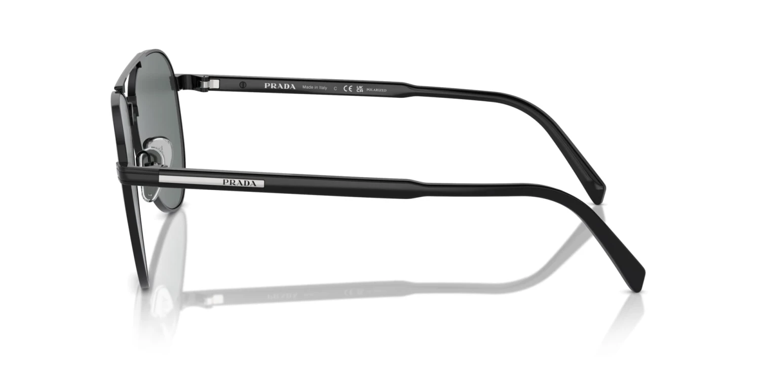 This aviator Prada sunglass comes in a black frame with dark grey polarised lenses.