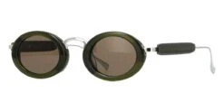 This round Projekt Produkt sunglass comes in a light khaki and white gold frame with brown lenses.