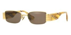 This square Projekt Produkt sunglass comes in a matte gold with brown havana pattern frame with brown lenses.