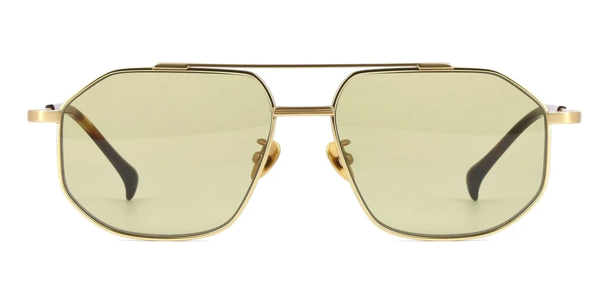 This square Projekt Produkt sunglass comes in a shiny gold frame with green with light mirror lenses.