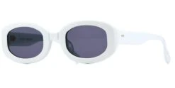 This cat eye Projekt Produkt sunglass comes in a shiny ivory frame with grey with light mirror lenses.