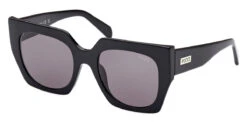 This butterfly Pucci sunglass comes in a shiny black frame with smoke lenses.