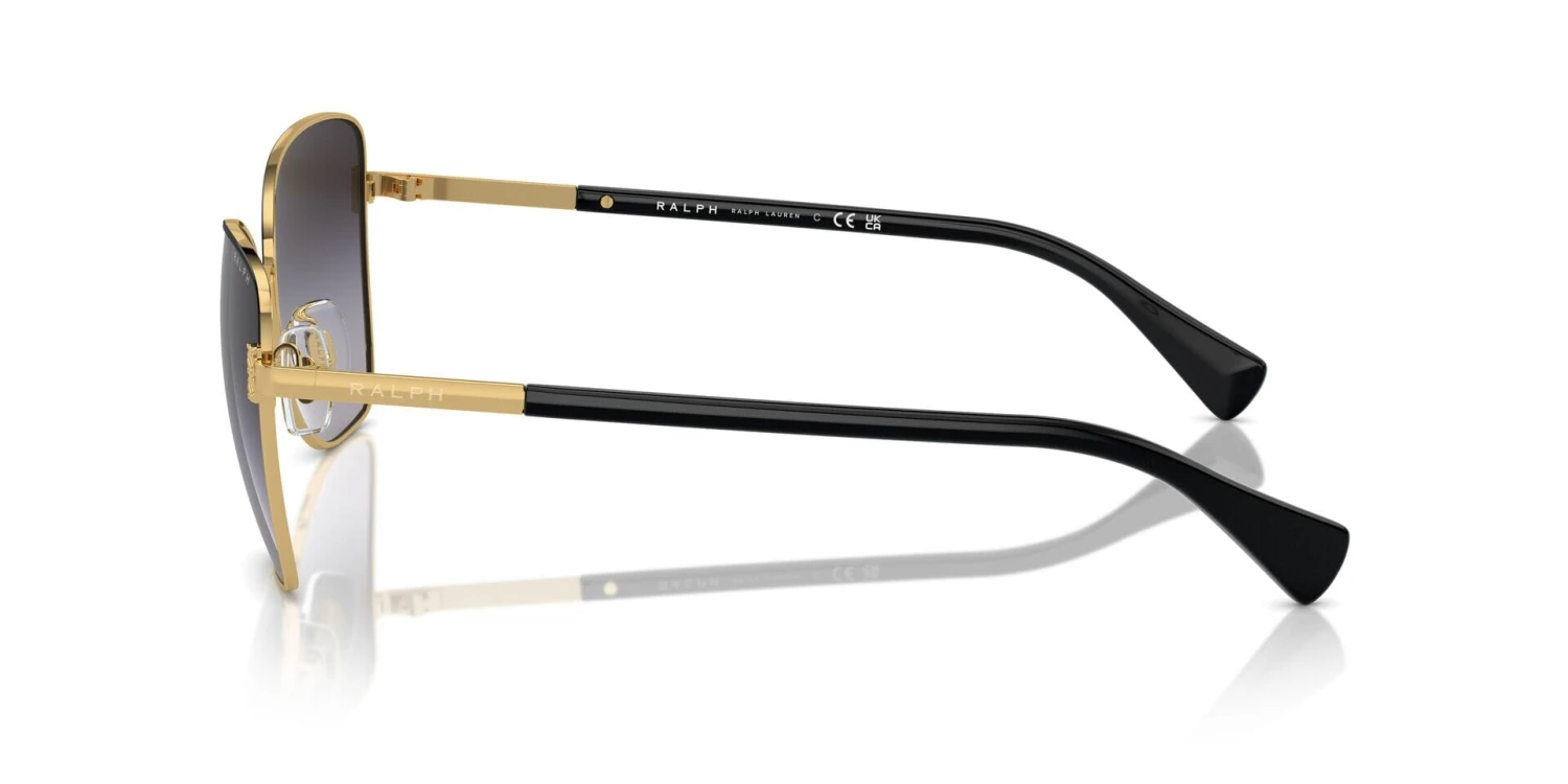 This butterfly Ralph by Ralph Lauren sunglass comes in a shiny gold frame with grey gradient lenses.