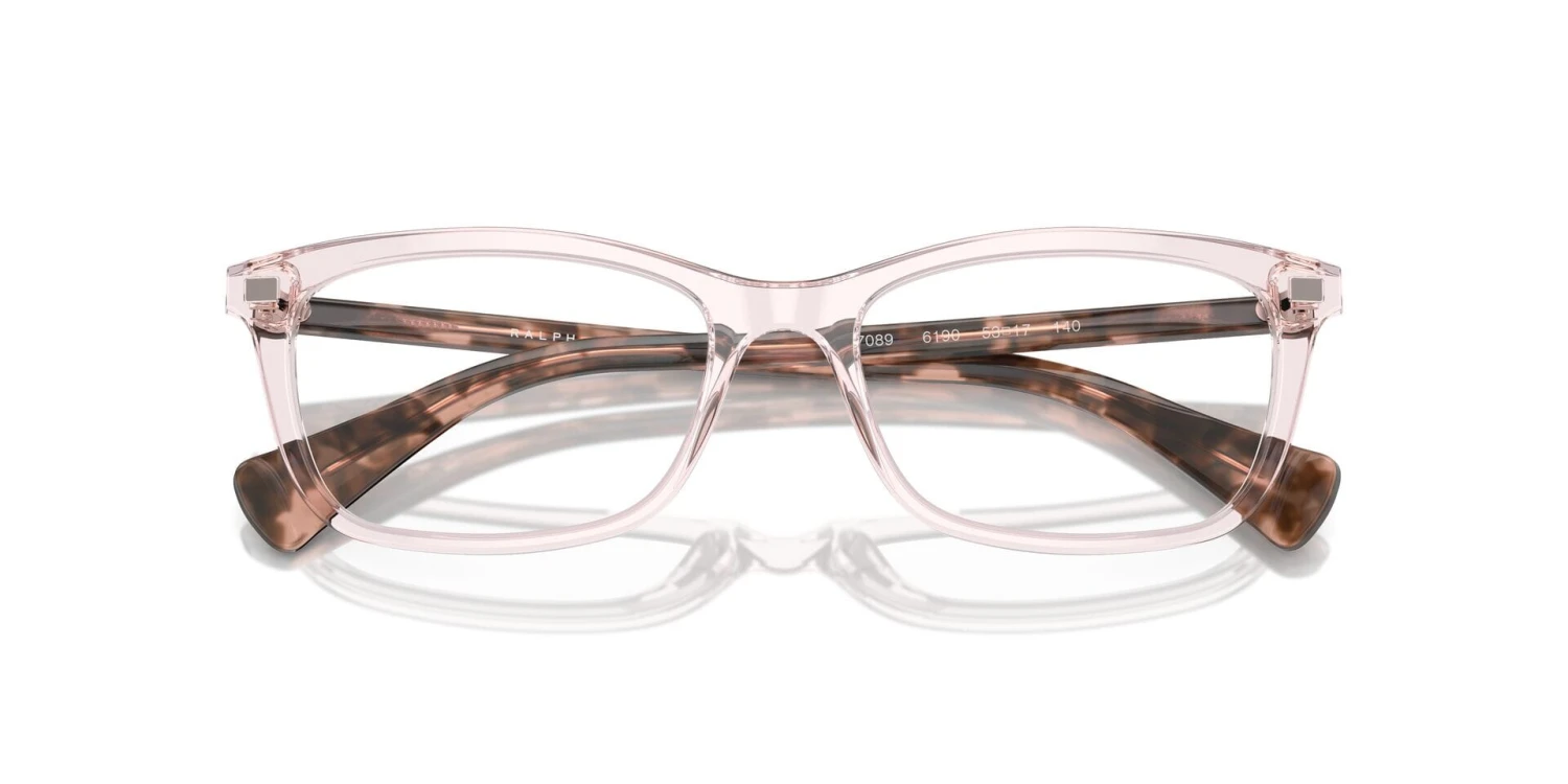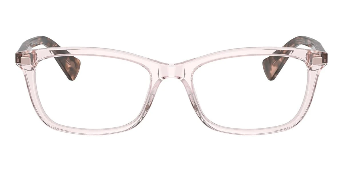 This rectangular Ralph by Ralph Lauren optical comes in a shiny rose crystal frame.