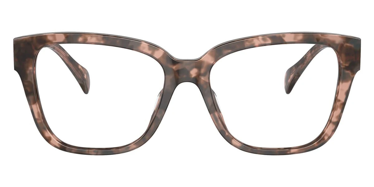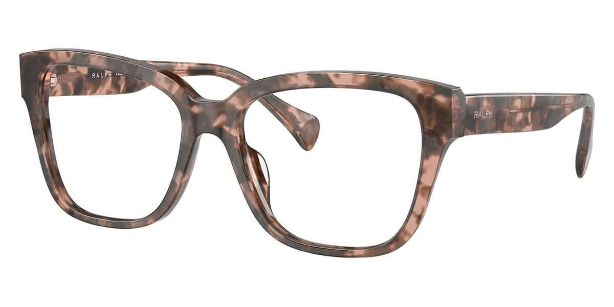 This square Ralph by Ralph Lauren optical comes in a shiny pink havana frame.