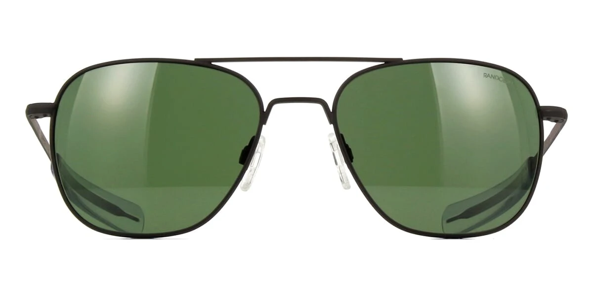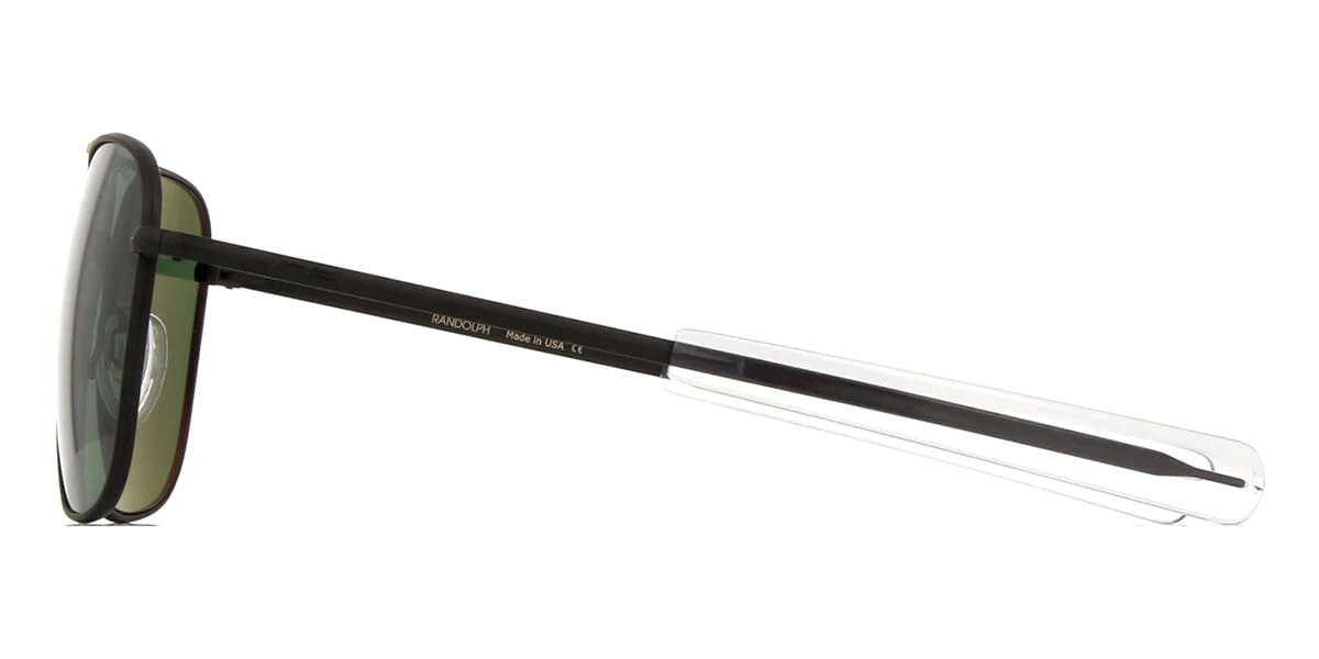 This aviator Randolph sunglass comes in a matte black frame with skytec green agx lenses.