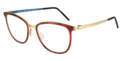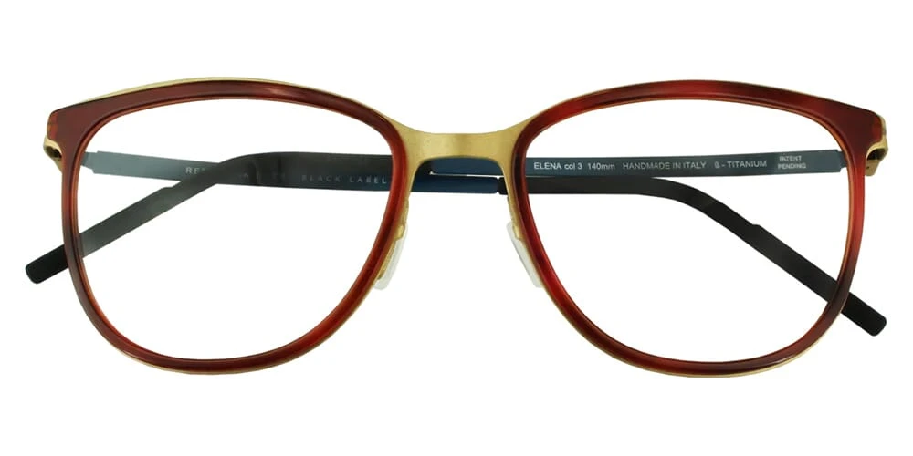 This square Reykjavik Eyes optical comes in a dark red with gold frame.