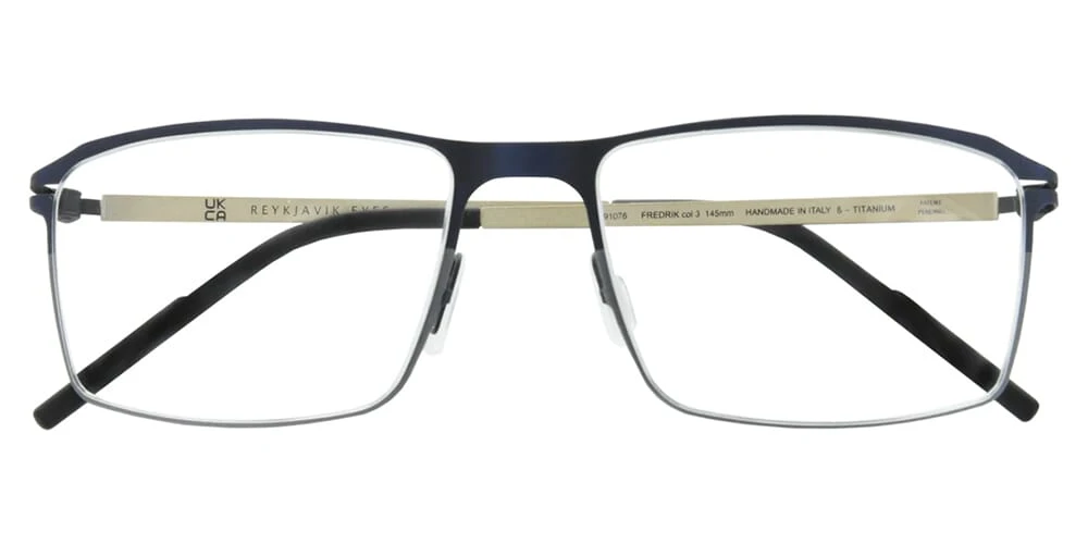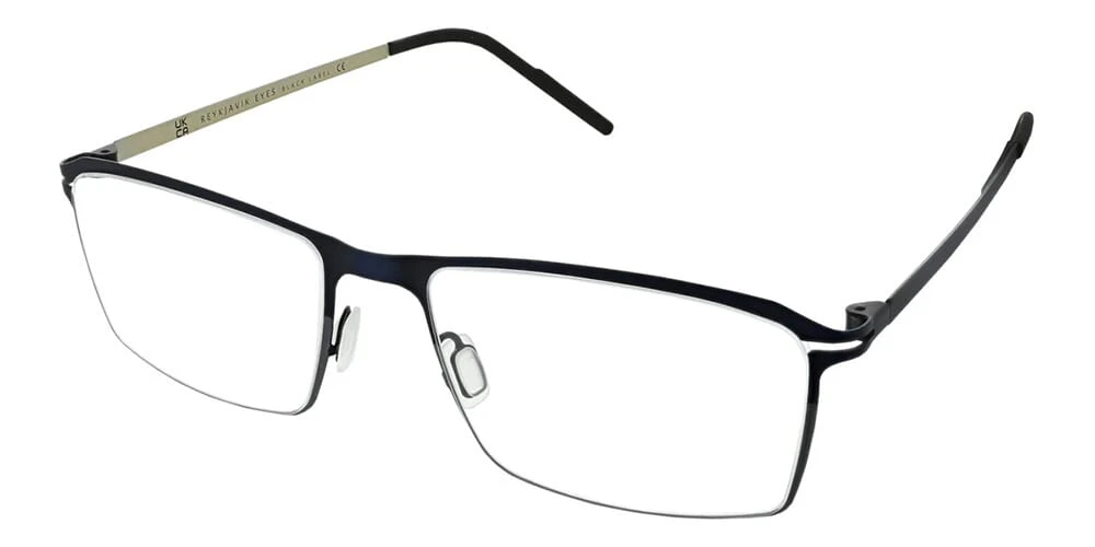This square Reykjavik Eyes optical comes in a dark blue with gold frame.