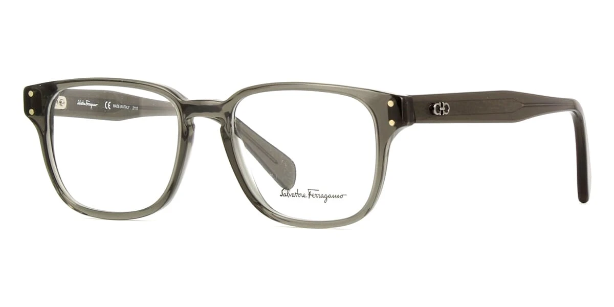 This square Salvatore Ferragamo optical comes in a green crystal frame.