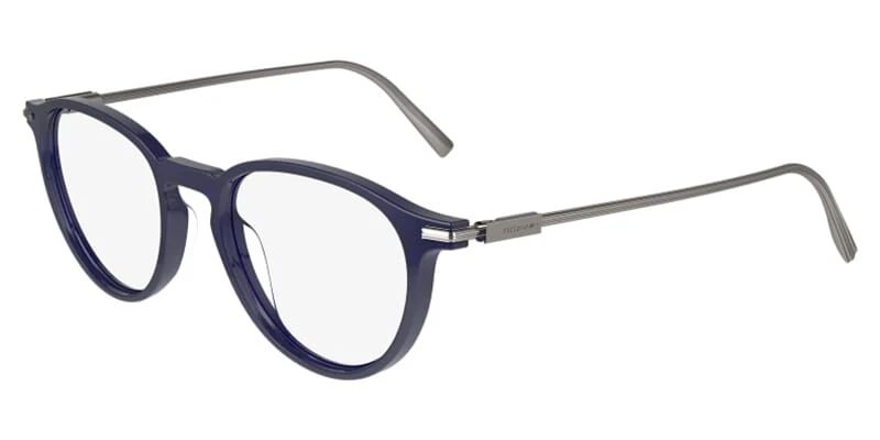 This round Salvatore Ferragamo optical comes in a transparent blue frame.