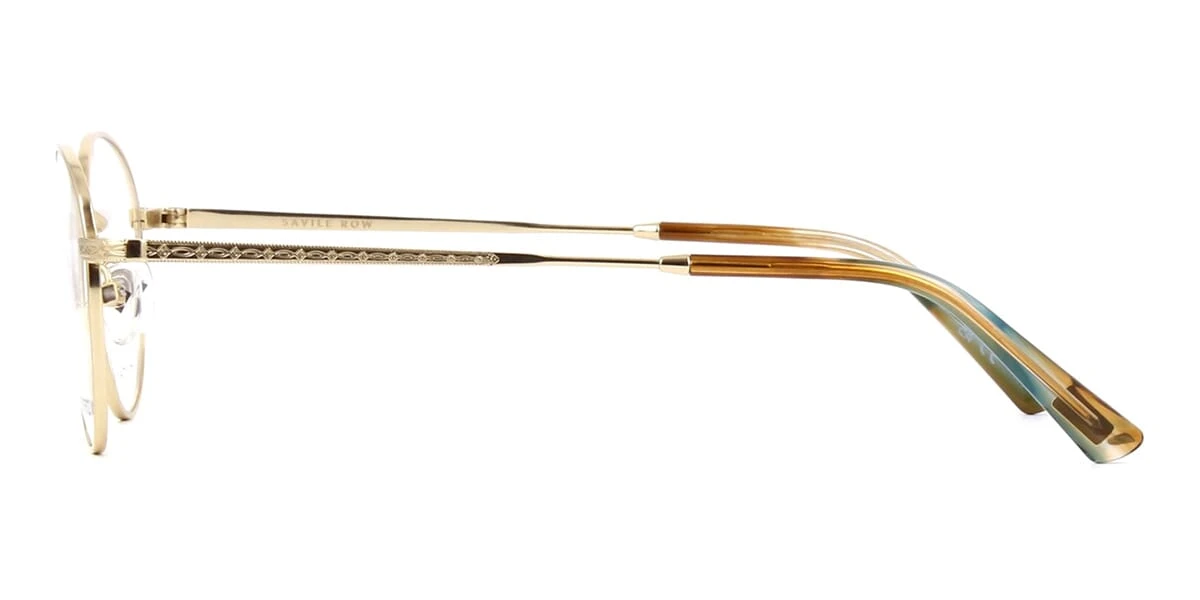 This round Savile Row optical comes in a shiny gold with brown crystal frame.