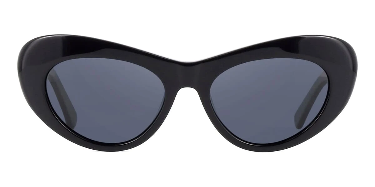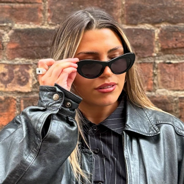 This cat eye Seeing Society sunglass comes in a shiny black frame with grey with light mirror polarised lenses.