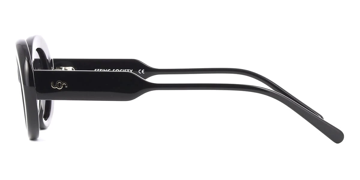 This cat eye Seeing Society sunglass comes in a shiny black frame with grey with light mirror polarised lenses.