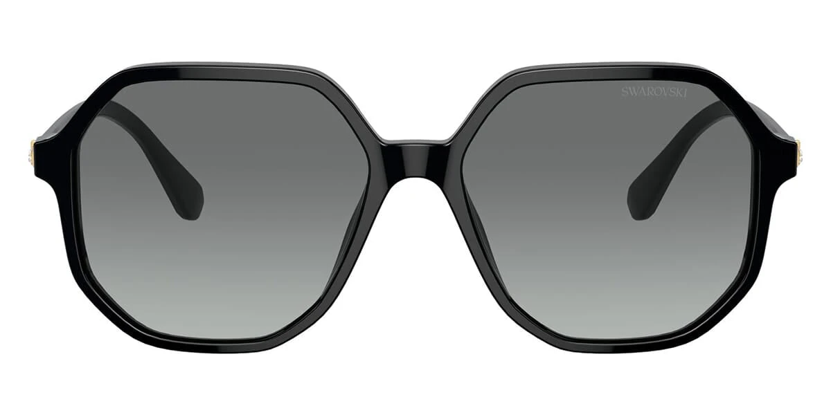 This square Swarovski sunglass comes in a black frame with grey gradient lenses.