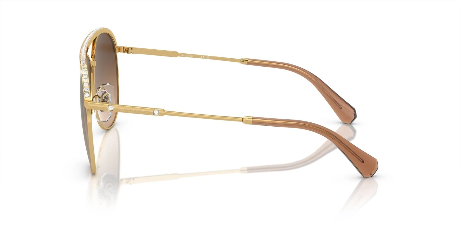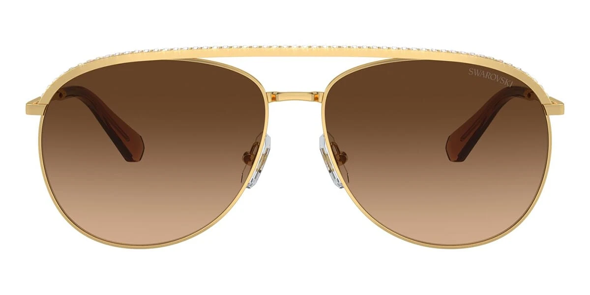 This aviator Swarovski sunglass comes in a gold frame with brown gradient lenses.