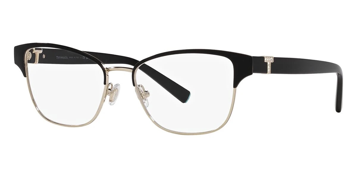 This cat eye Tiffany optical comes in a black on pale gold frame.