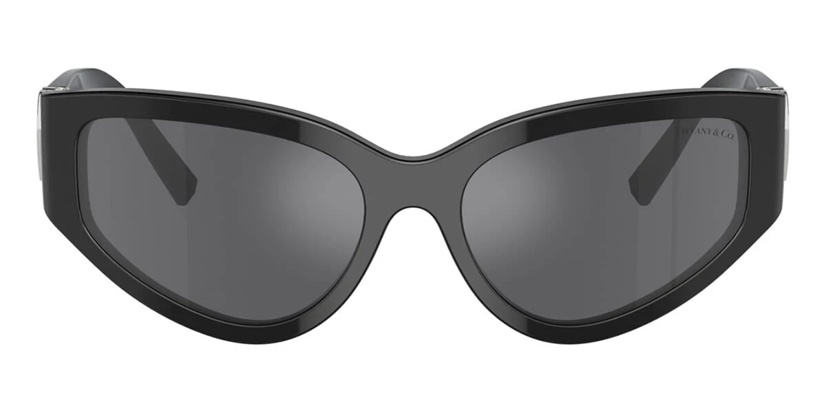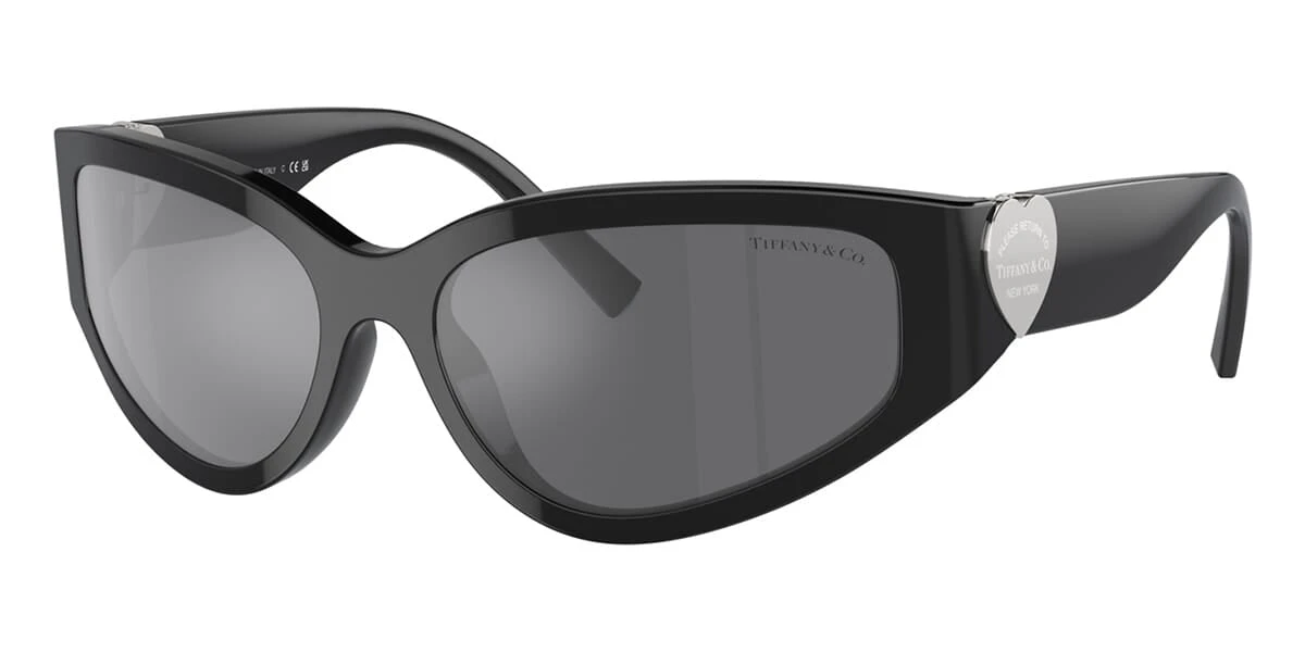 This rectangular Tiffany sunglass comes in a black frame with grey with black mirror lenses.