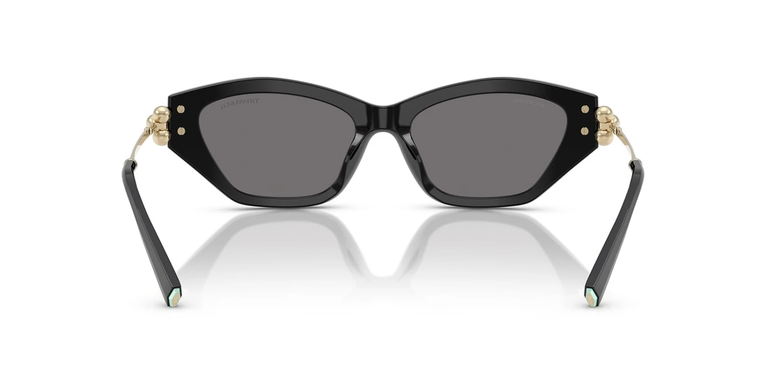 This cat eye Tiffany sunglass comes in a black frame with dark grey polarised lenses.