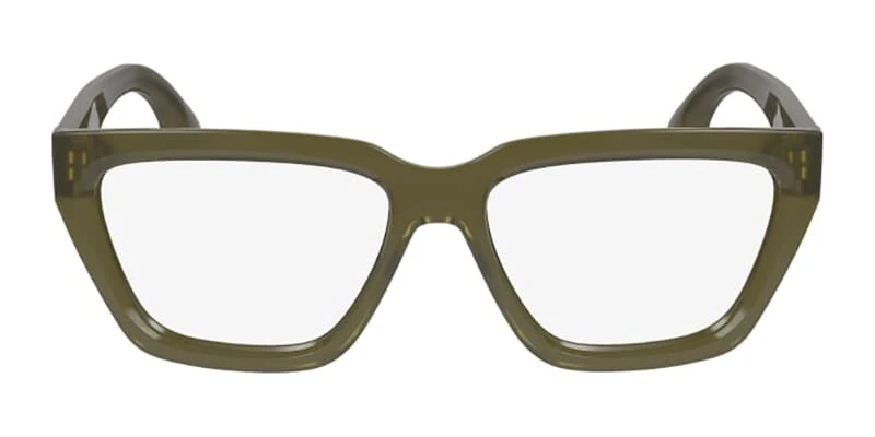 This square Victoria Beckham optical comes in a transparent dark olive frame.