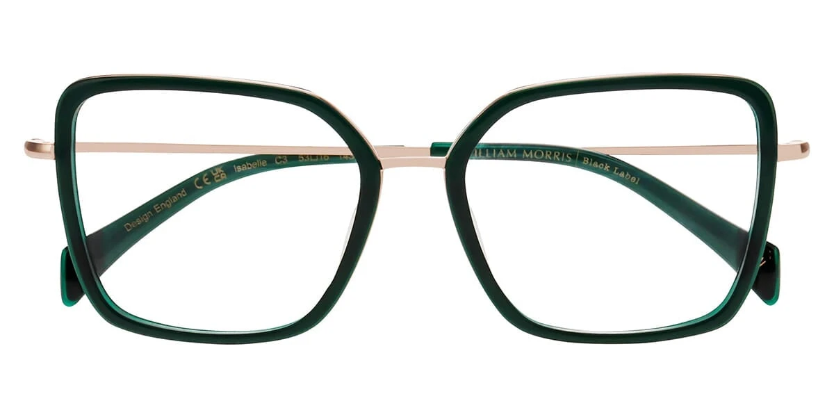 This square William Morris optical comes in a green medium matt frame.