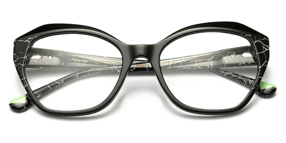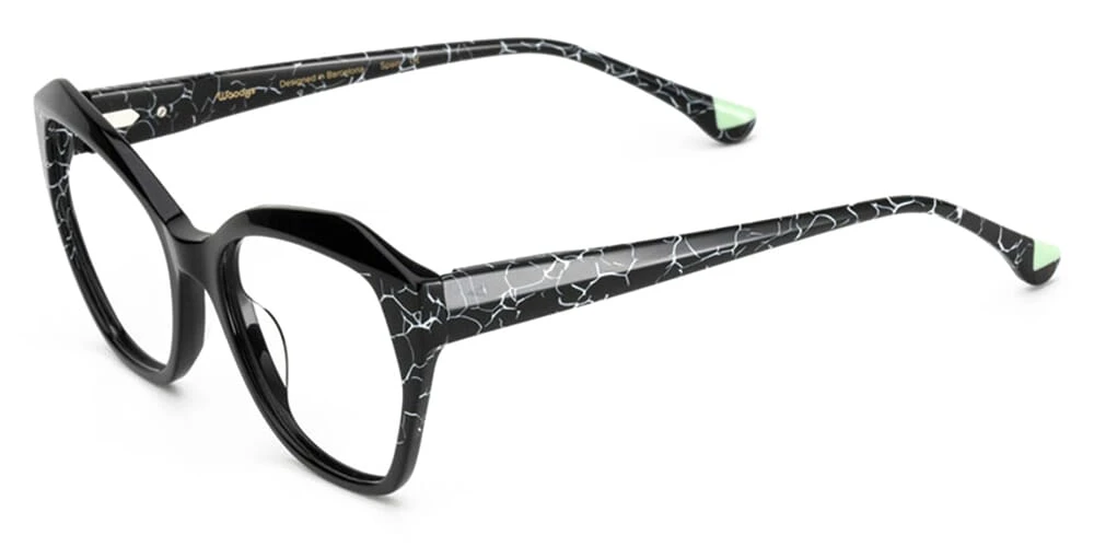 This square Woodys optical comes in a shiny black with white marble effect detail frame.