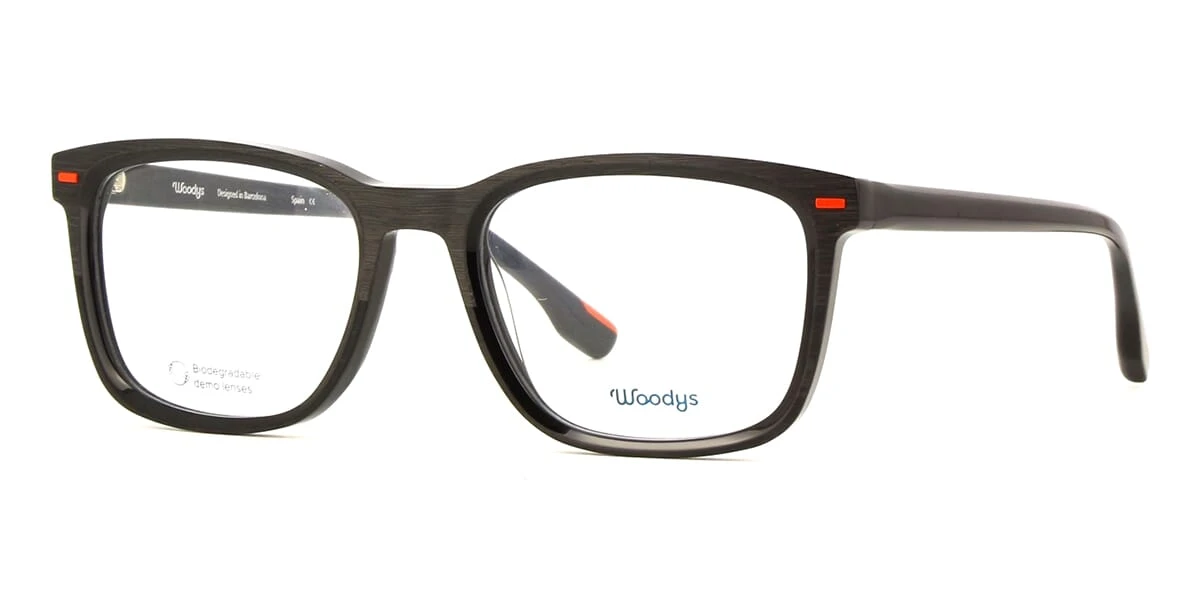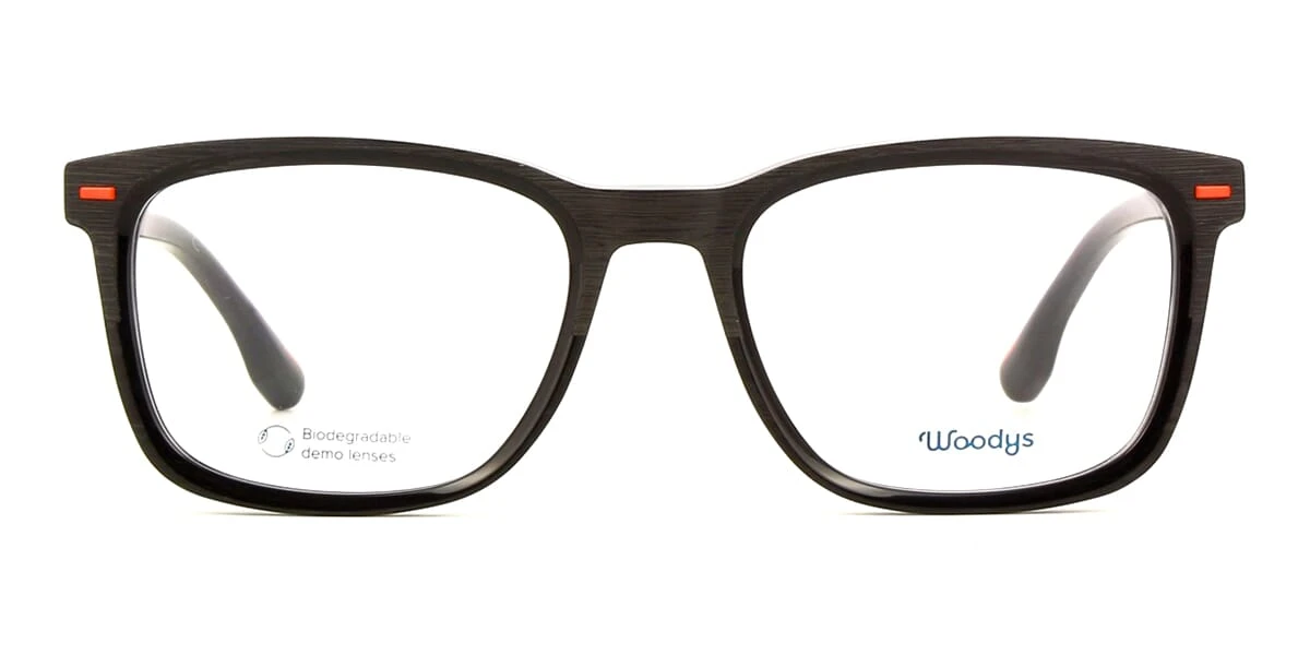 This square Woodys optical comes in a matte grey on shiny black frame.